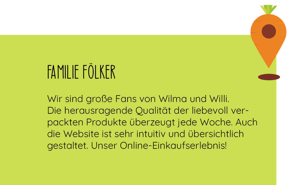 Wilma & Willi liefert Dir die frischesten Lebensmittel vom Acker direkt in Deine Küche. Schnapp Dir eine unserer leckeren Obst- und Gemüsekisten oder stell Dir Deinen Wocheneinkauf selbst in unserem Online Hofladen zusammen.