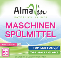 Geschirr-Reiniger für alle Haushalts-Geschirrspülmaschinen. Phosphat-, chlor- und gentechnikfrei. Sehr sparsam im Verbrauch, schont Maschine und Geschirr. Bei besonders hartnäckigen Tee- und Kaffeeverfärbungen an Tassen, Kannen etc. einfach einen Teelöffel AlmaWin Sauerstoffbleiche in die Dosierklappe Ihrer Spülmaschine geben.