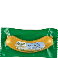 63% Geflügelfleisch* (Pute*, Huhn*), 14% Sonnenblumenöl*, Trinkwasser, Geflügelhaut*, Meersalz, Gewürze* (Knoblauch*, Koriander*, Ingwer*, Macis*, Muskatnuss*, Pastinake*, Pfeffer*, Zwiebel*), Saccharose*.| Energie | Fett | gesättigte Fettsäuren | Kohlenhydrate | Zucker | Eiweiss | Salz |